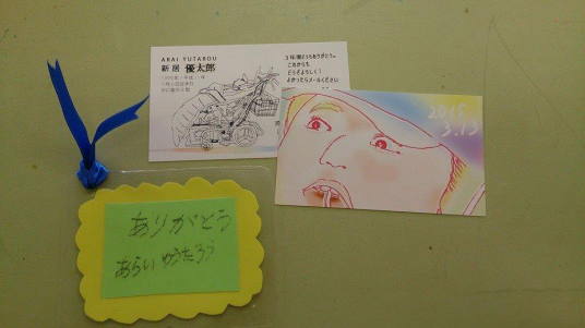 卒業式は感動のうちに終わり、クラスの子達や仲良くしてくれた子達に名刺を渡し、みんなとお別れした。帰ってすぐタブレットを見ると、何と送ってくれている子がいた〜!男子二人女子二人が連絡をくれていた。なんて優しい子達!急いで返事をすると、早速また返事をくれ、返事に追われ嬉しい悲鳴!これからも、繋がっていけたらと思うと本当に嬉しくなった。地域の学校に行ってよかった。心からそう思う。5.後期入学試験不合格、さらに挑戦!卒業式に配った名刺とメッセージカード