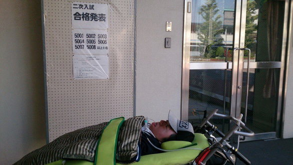 受験の後Yさんに「試験はどうだった?かんたんだった?」と聞くと、2回まばたきを返して自信のほどを示してくれました。「後期の試験も頑張って」というと、はっきりとまばたきを2回繰り返しました。Yさん、やる気満々です。あす3月2日は、「前期試験の合格発表」です。さてどうでしょうか。